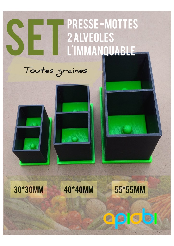 Les modèles 1, 2, 4, 6 alvéoles en PET de la gamme « l’immanquable » bénéficient déjà d’excellents retours clients. Cette gamme vient compléter les 3 modèles de la gamme « classique » qui permettent de fabriquer facilement des mottes de 20X20, 30×30 et 40×40 mm.