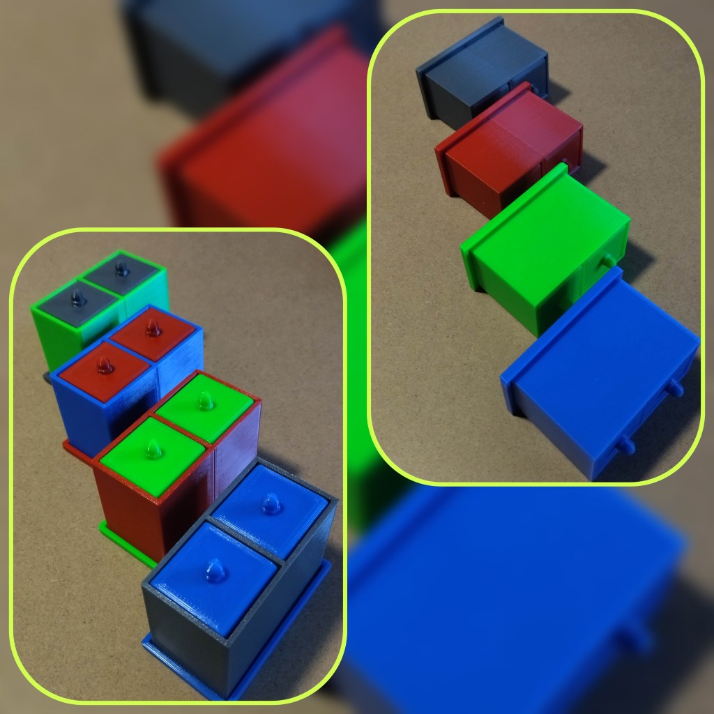 Face à la facilité d’utilisation de la gamme « l’immanquable », des modèles sur mesure m’ont été commandés, comme un 60X70x70mm, 4 alvéoles sans évidement ou des 40x40mm de toutes les couleurs pour une école.