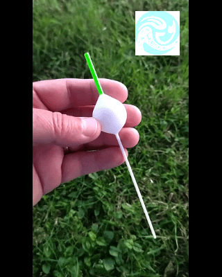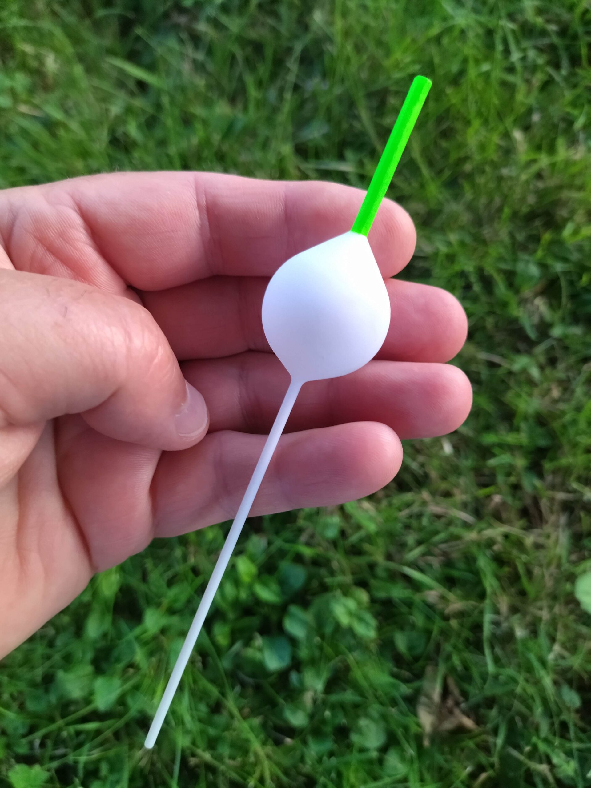 Sur la photo et la vidéo .GIF, seule l’antenne du flotteur a été peinte en vert fluo puis vernie.