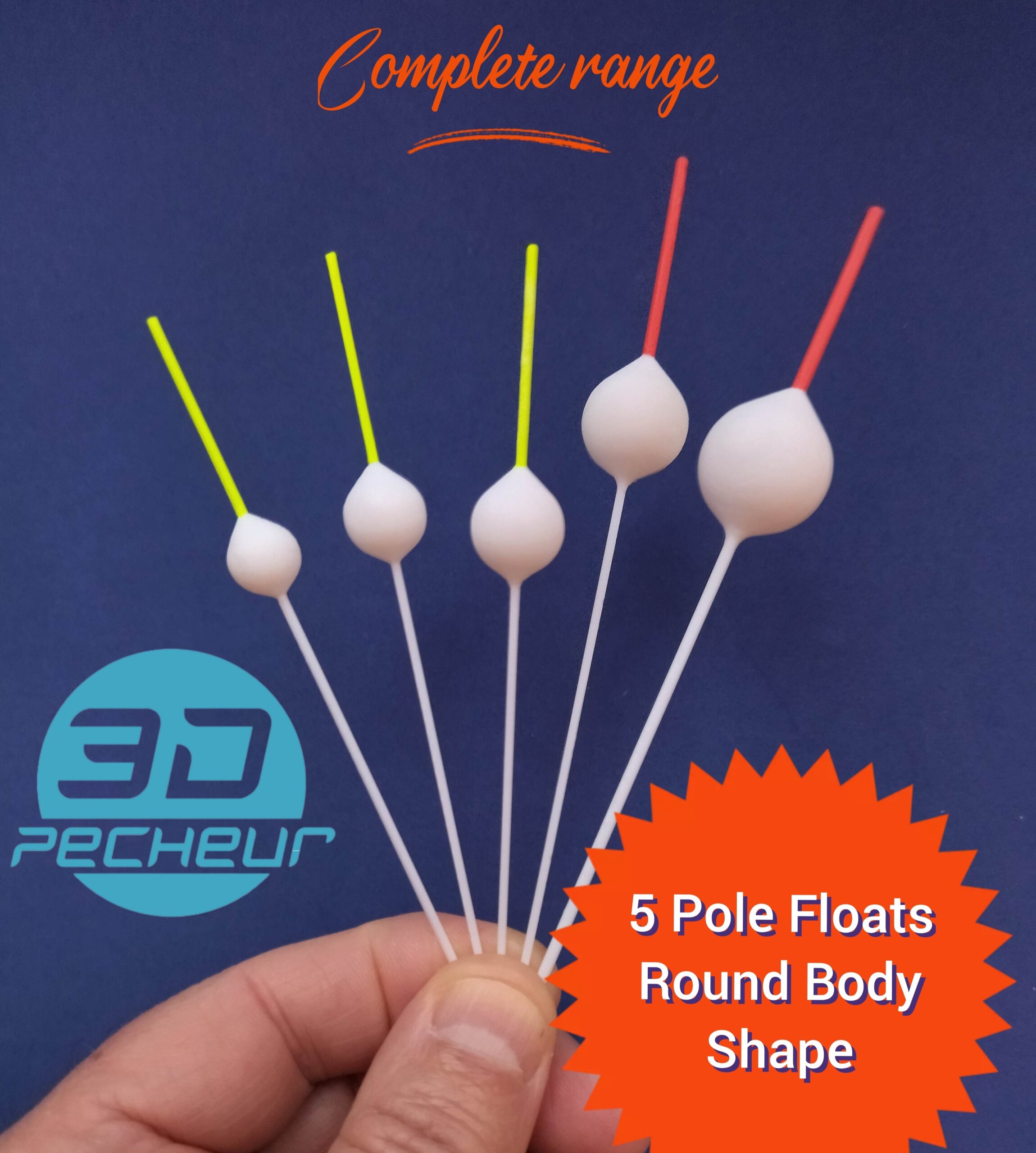 Gamme complète de 5 flotteurs de pêche – Corps rond