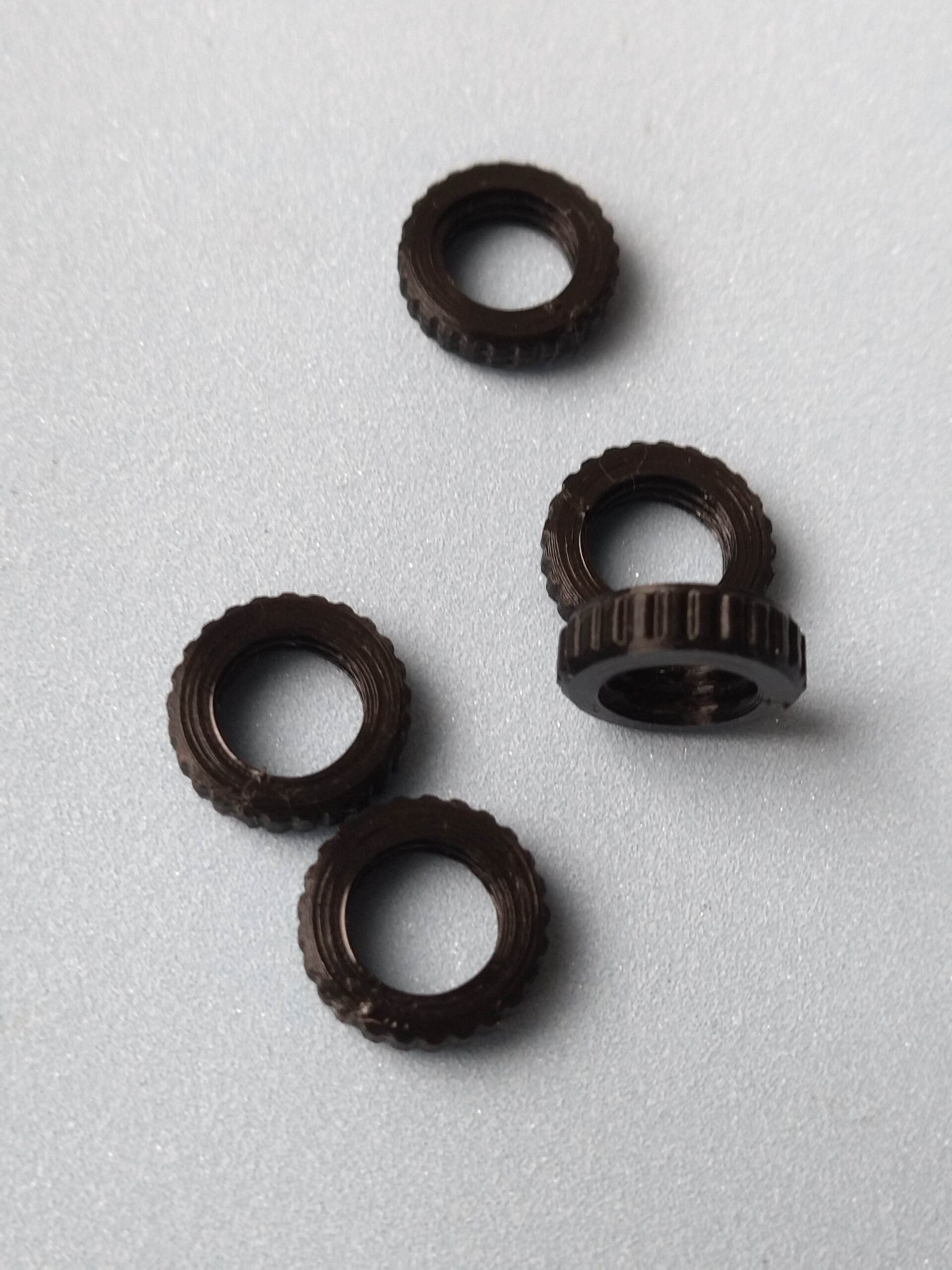 Les écrous de serrage avec filetage britannique standard 3/8 BSF (tolérances incluses pour l’impression 3D) se vissent sur les pas de vis des rod pods, buzzer bars, détecteurs de touches et indicateurs des plus grandes marques.